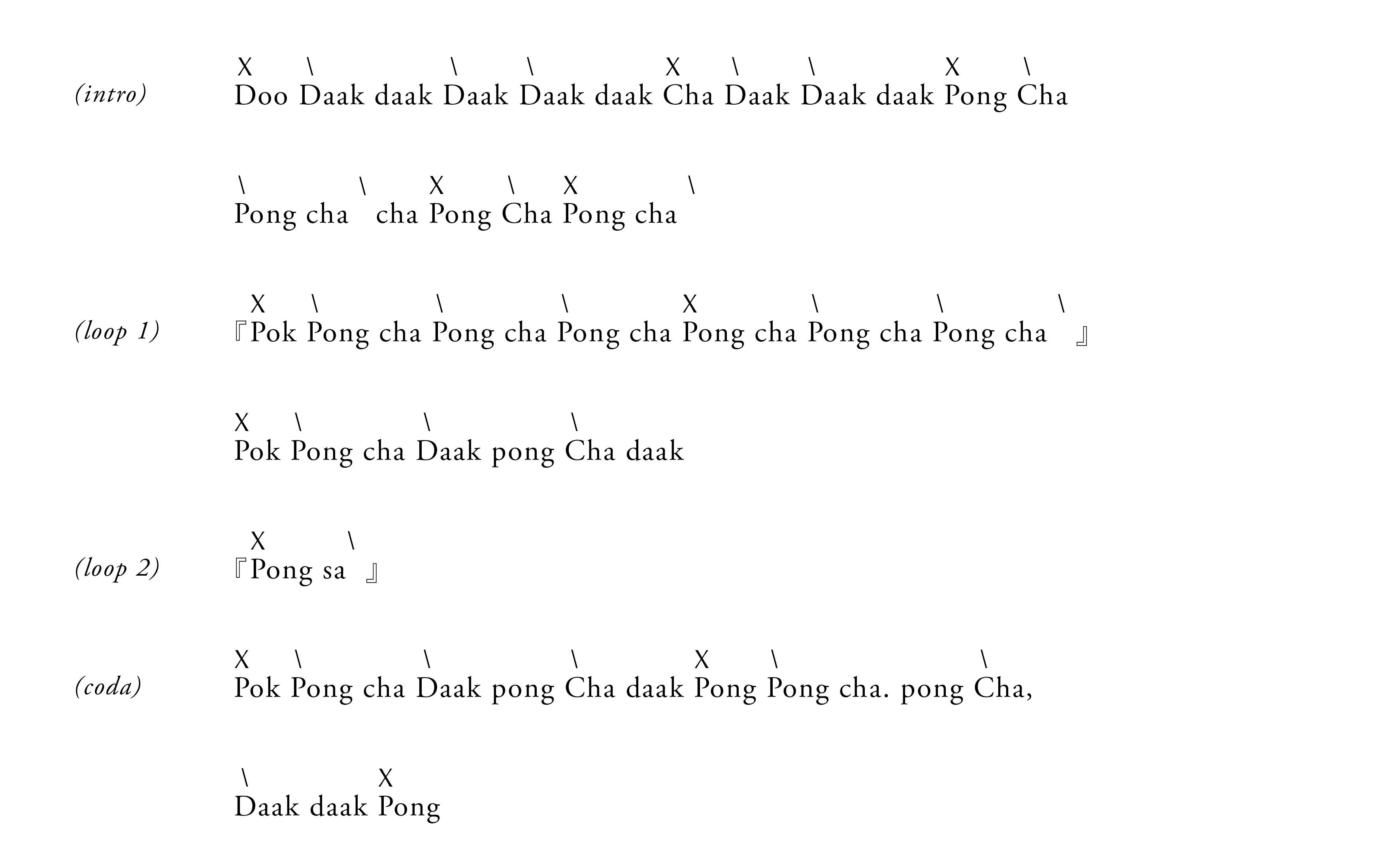 Intro – Loop 1 – Loop 2 – Loop 3 – Loop 4 – Loop 3 – Loop 4 – Coda