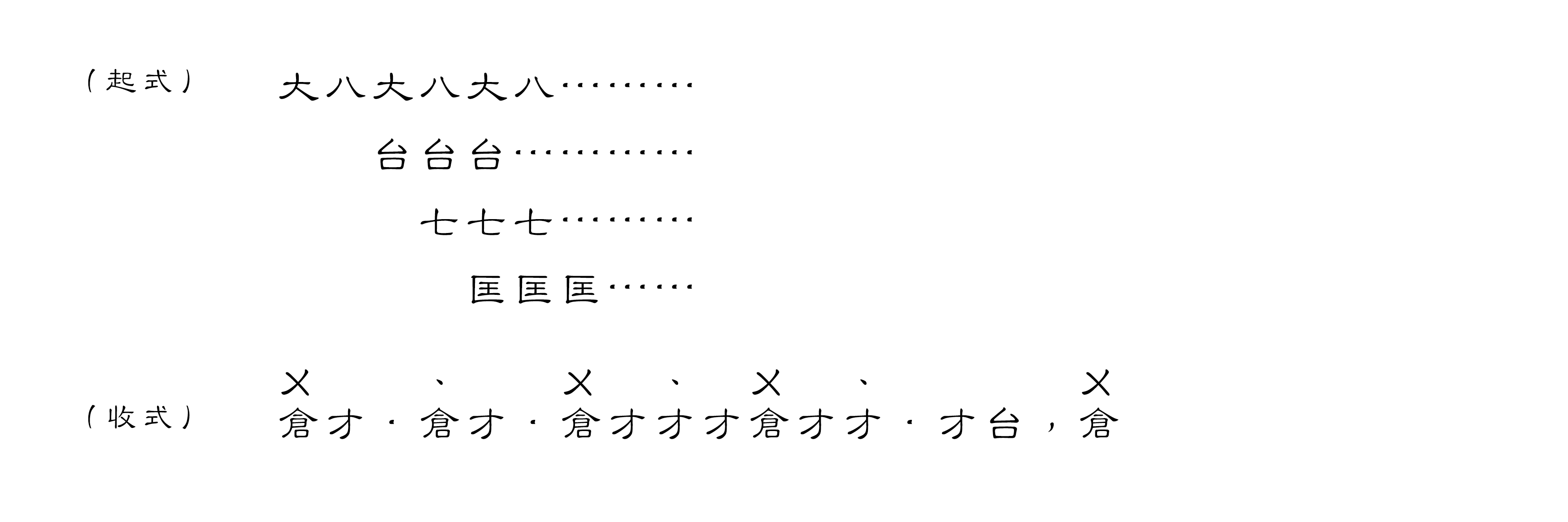 起式 – 循環1 – 循環2 – 循環3 – 循環4 – 循環3 – 循環4 – 收式